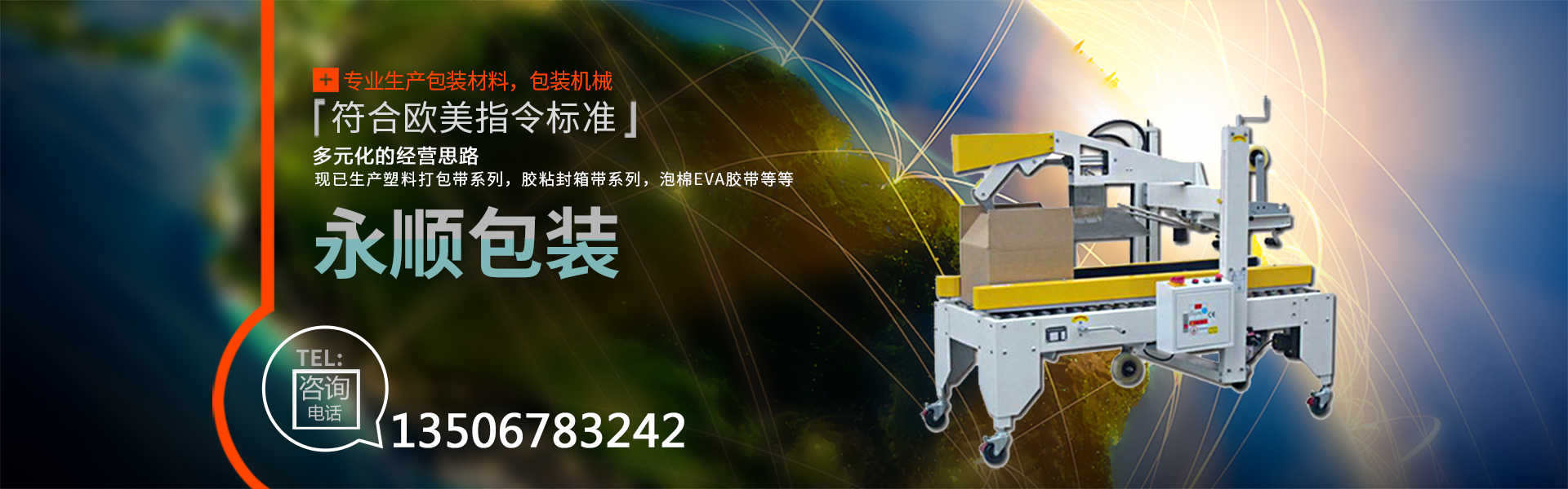 慈溪市永順包裝材料有限公司是一家專業(yè)生產(chǎn)包裝材料,包裝機械的廠家。公司自創(chuàng)建以來,經(jīng)過不斷的努力,憑借優(yōu)異的產(chǎn)品質(zhì)量,良好的售后服務(wù),在市場上取得了突飛猛進(jìn)的業(yè)績,獲得了客戶的廣泛認(rèn)可與贊譽。公司本著多元化的經(jīng)營思路,現(xiàn)已生產(chǎn)塑料打包帶系列,膠粘封箱帶系列,泡棉EVA膠帶,鋁箔膠帶、美紋膠帶、牛皮膠帶、文具膠帶。全自動打包機,收縮包裝機,移印機,真空包裝機,自動封口機,纏繞膜裹包機,等各種包裝機械(無人化全自動包裝機械)。其中塑料打包帶、粘膠帶已全面通過SGS認(rèn)證,符合歐美指令標(biāo)準(zhǔn)。